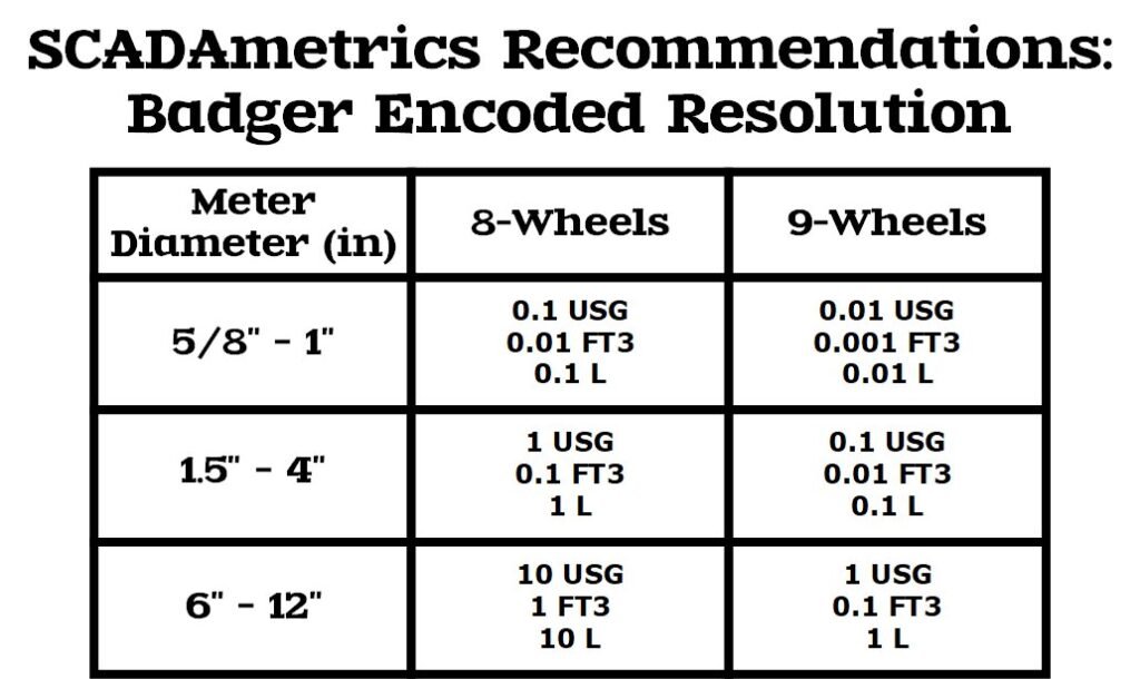 When encoded cables are utilized, it is always recommended that the Badger meter be pre-programmed to provide the finest resolution available and the maximum number of digits or “wheels” (usually 9 or 8):