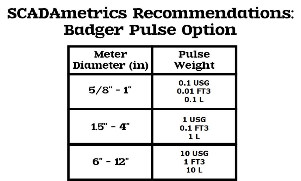 When pulse cables are utilized, it is always recommended that the Badger meter be pre-programmed to provide the finest resolution pulse available: